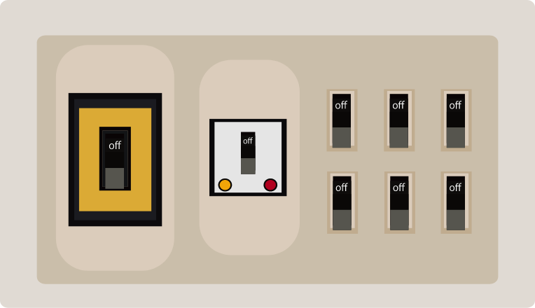 お客様のご自宅内にある分電盤(アンペアブレーカー)をご確認ください。