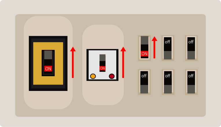 続いて、左から順番に1つずつブレーカーをあげていってください。